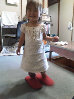 そして日曜日。7時前からアワアワ声が聞こえだしたので私も起床。で、人見知りされつつも一緒に遊んであげました。っていうか私が遊んでもらったのかな?