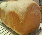 そして焼き上がり!もう少し2次発酵すればもっと膨らんだと思うけど、それでもふわふわに出来ました。ほんのりハチミツの香りと甘味がして美味にございます~。このレシピもよい!以前のレシピも美味しかったしハチミツ入り食パンは失敗知らずデス。ついでに焼きたてアツアツの内に食べるとミミがカリカリ、中はふわふわで2倍美味しい!