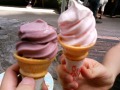 そうそう、山梨といえば葡萄と桃ですよね?巨峰ソフトと白桃ソフトは食べておかないとね。予想以上の味に感動を覚えました。あまりの美味しさに写真、あわてて食べかけを撮りました。