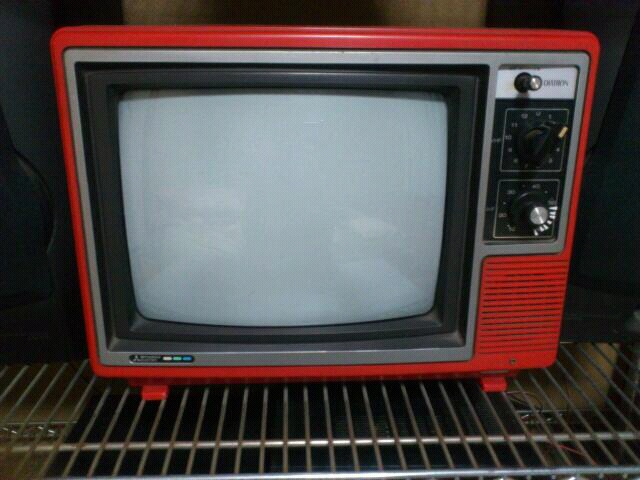 89年製モチロンアナログブラウン管。リモコンはなくチャンネルをガチャガチャ回すヤツです。私が実家から持ってきた物。こういうシンプルなのって壊れないんだよね。まだまだ使えるんだけど、時代はデジタルなのです、ついにお別れなのです。今までありがとう(/_;)/~~