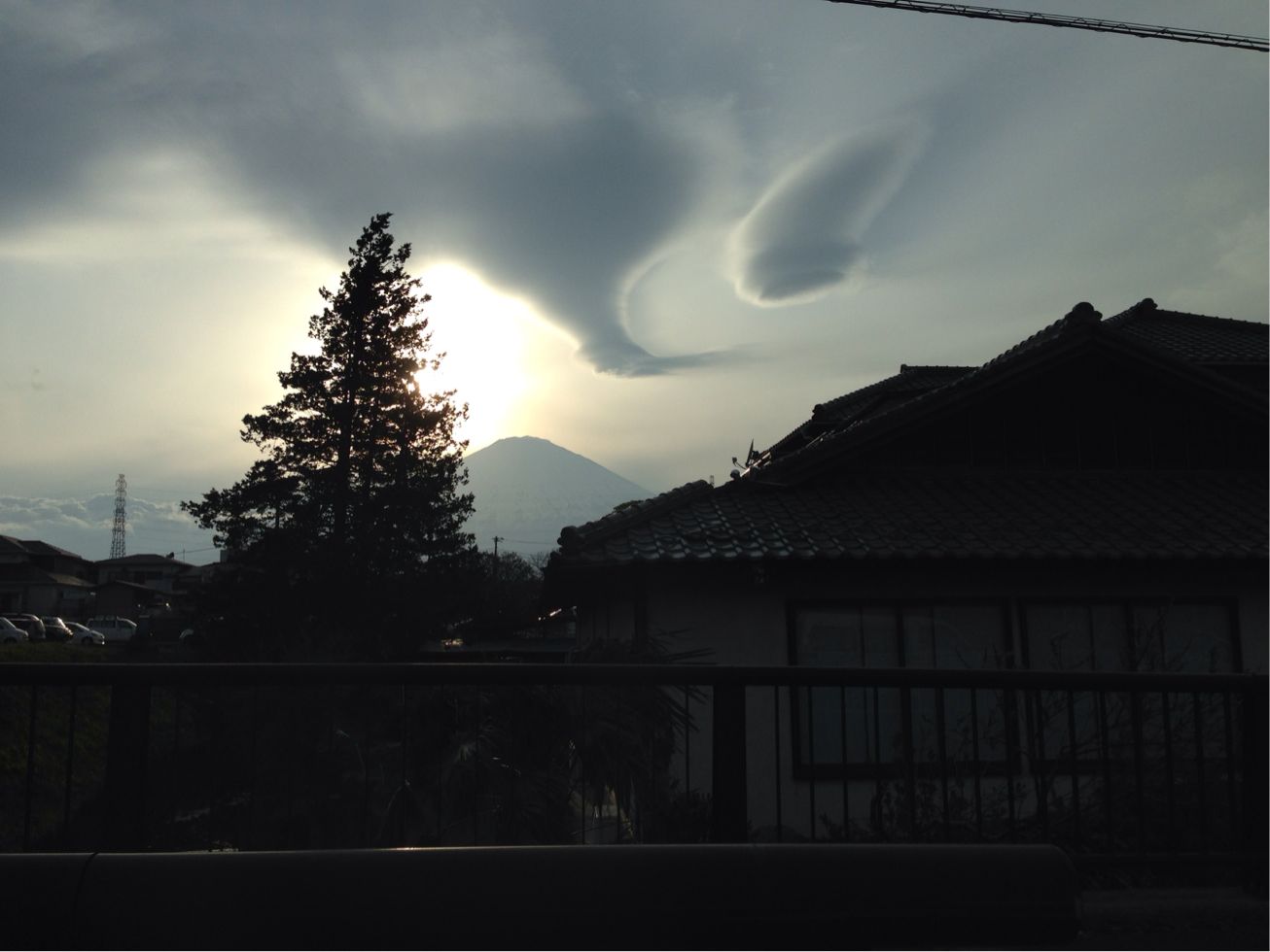 帰り道に不思議な雲が富士山上空に!!何かがいそうですよねぇ〜。