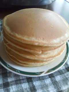 今日は夫婦揃って休日。お昼はホットケーキ。