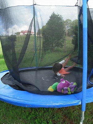マチルダ、トランポリンで大はしゃぎ。