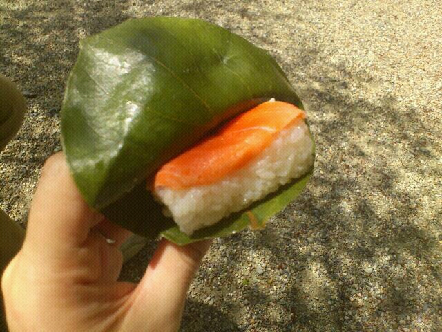 それから猿沢池を眺めて、旦那さんのお友達お勧めの平宗の柿の葉寿司をお買い上げ〜。