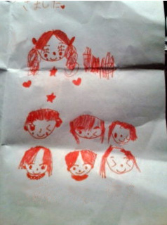 こちらが6歳の女の子が描いてくれた参加者の似顔絵。残念ながら彼女のママはいつも書いてるからいいっ!って入っていません。