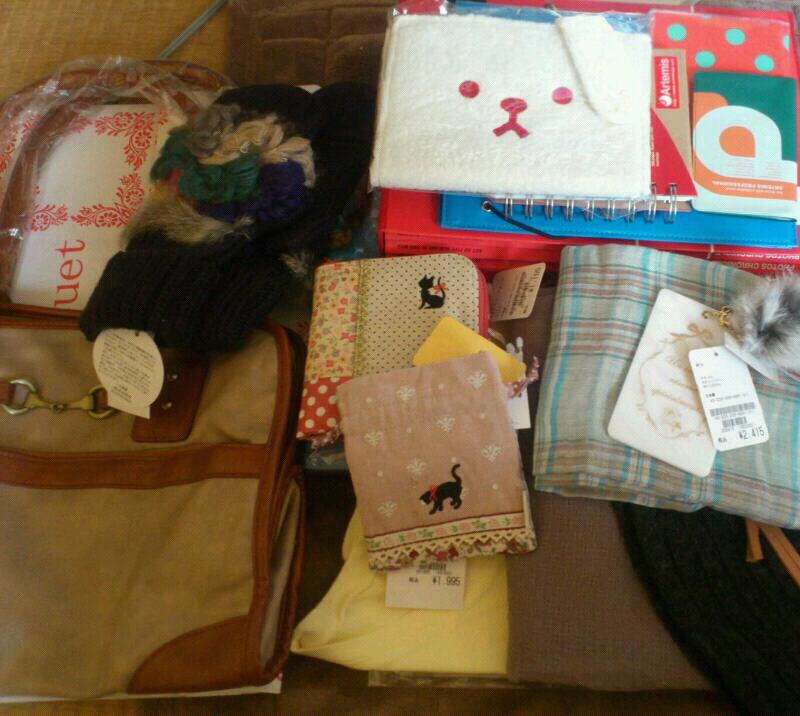バッグ、Tシャツ、手袋、ストール二枚、他雑貨が使える物も使えない物もごっそり入ってました。色々無駄に使ってみよう!