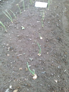 先々週あたりに植えたらしい新顔、玉ねぎ君たち。