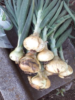 玉ねぎだよね、それから大根。大根の方は先週1本旦那さんが収穫済み。ちゃんと大根です!