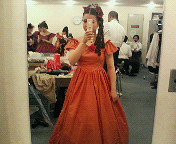 さて、今日は1時30分集合で、まず舞台用のメークを教えてもらいました。もう、凄いっス。鼻の側面に茶色く陰を作り、バッサバッサ言いそうな付けまつ毛をつけ、これでもかってくらいのアイライン、ハイライト、まっピンクのチーク…もう自分で笑っちゃいます。化けもんですよ。それでもステージで色んな色のライトにカーッと照らされると全然甘いらしくって、今日の3倍ぬらないと今日のままじゃ全然普通!!ってデザイナーさんに言われてしまいました。これで普通ですかっ!?確かに、合唱の中にもプロ歌手が数人いるのですが、舞台慣れしてる方々はメークも慣れてる!私ももっとガンガン行かないとですね。明日、今日の3倍宝塚顔負けメークをしっかり記念に撮るのでどうしても見たい方、直接会った時にリクエストしてくださいね