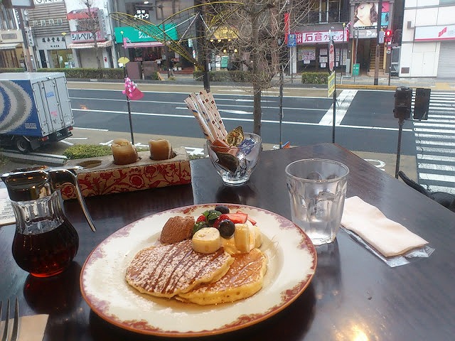 北口のスタバの2階。ここにこんなお店あったっけ??カフェと雑貨屋さんでパンケーキ食べました♪日曜日で雨降っていたからかお客さんがほとんど居なくて、パンケーキを注文してからカシャカシャカシャ…と奥の方で2回聞こえてきたのです。たぶん生地を混ぜる音と、2回目は生クリームを混ぜる音だろうな~♪なんて考えつつ、のんびりできました。
