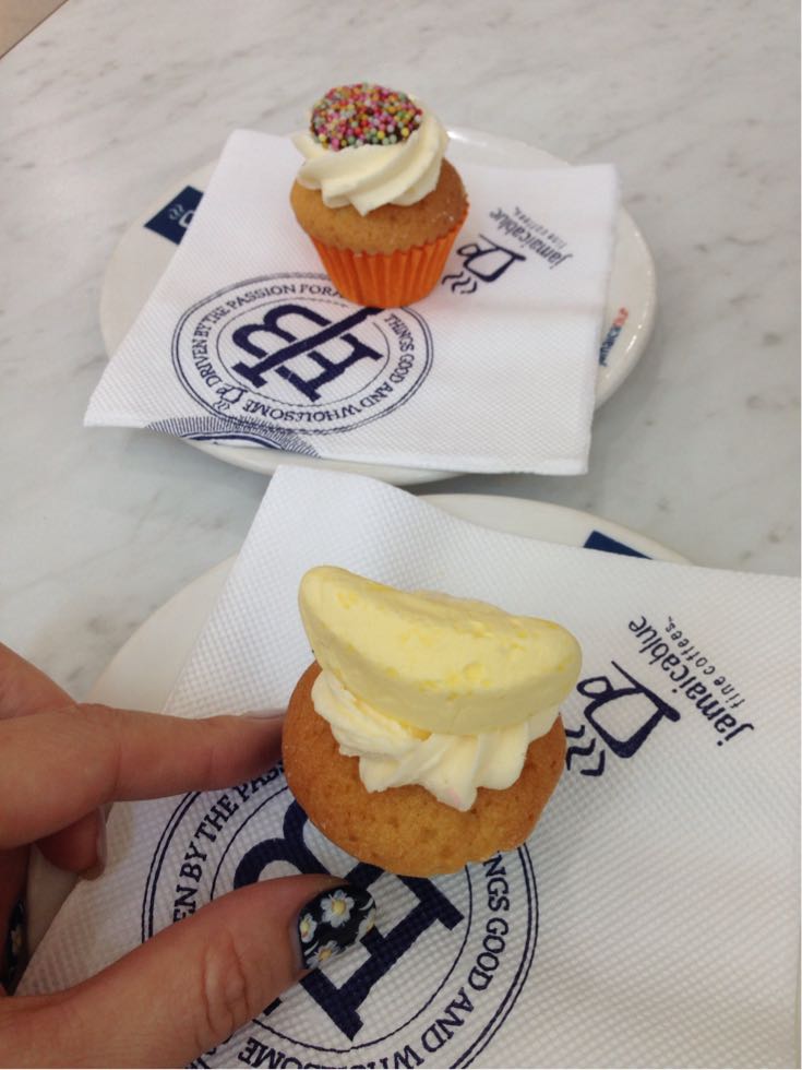 こちらはショッピングモールでコーヒー休憩にちょこっと食べたミニカップケーキ。可愛い。