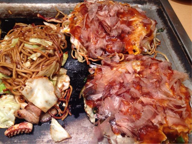 お好み焼き、オムそば、モダン焼き、どれも美味いっす!人数が多いと色んな種類を頼めるから良い