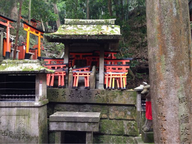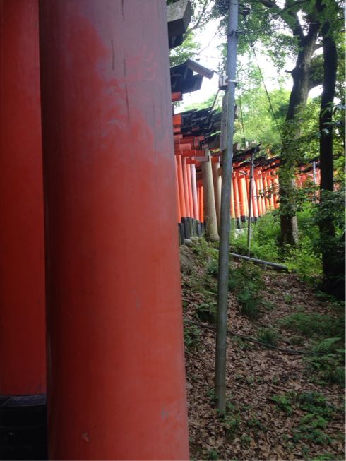 達成感!!で、ここから降るわけですが、ここからが長かった(⌒-⌒; )あとは降りるだけ〜と油断したのかどこをどう間違えたのか徐々に鳥居が無くなり、一向に神社が見えてこない…おかしいと思った時には手遅れでした。来た道をまた戻る体力は残っていないのでとにかく一本道を下ったら、隣駅の東福寺の裏の方に降りついたのでした…なぜ!?未だに分からんですよ。