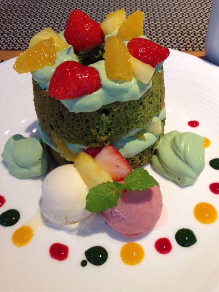 お茶と言うかこの日の夕飯となりました、抹茶のシフォンケーキ!!