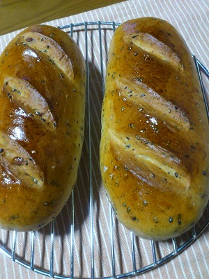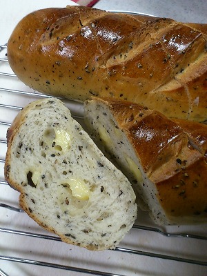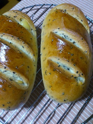 黒ゴマを生地に練りこみ、チーズも入れて、黒ゴマチーズパン完成!
