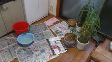 新聞紙やら広告を広げましたの図。