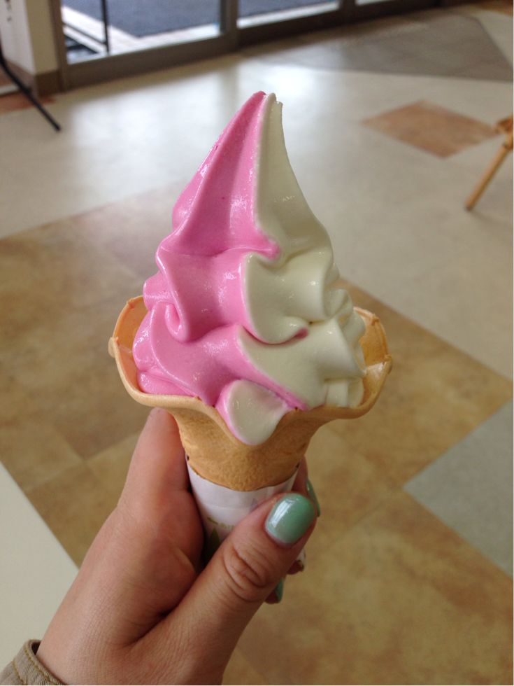 途中の朝霧高原で食べたコケモモソフト〜。すごいピンクね。