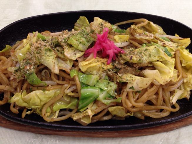 遅めのお昼は富士宮焼きそばを初めて食べました。麺が太めで美味しい!普通の焼きそばより好きかも…