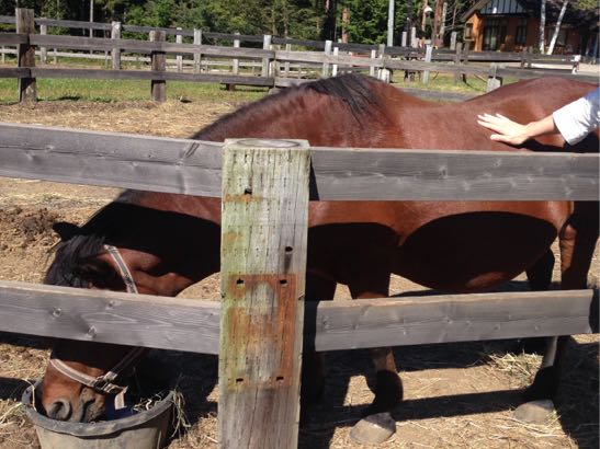 木曽馬の里でお馬さんと触れ合い、乗馬体験なんてしてしまいました。人生初乗馬。