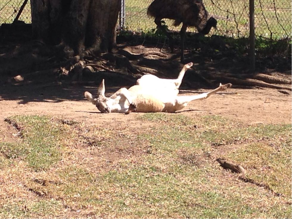 ぐうたらなカンガルー。リモコン持ってテレビの前で寝てるみたい(笑)このあとアヒルに叩き起こされてました