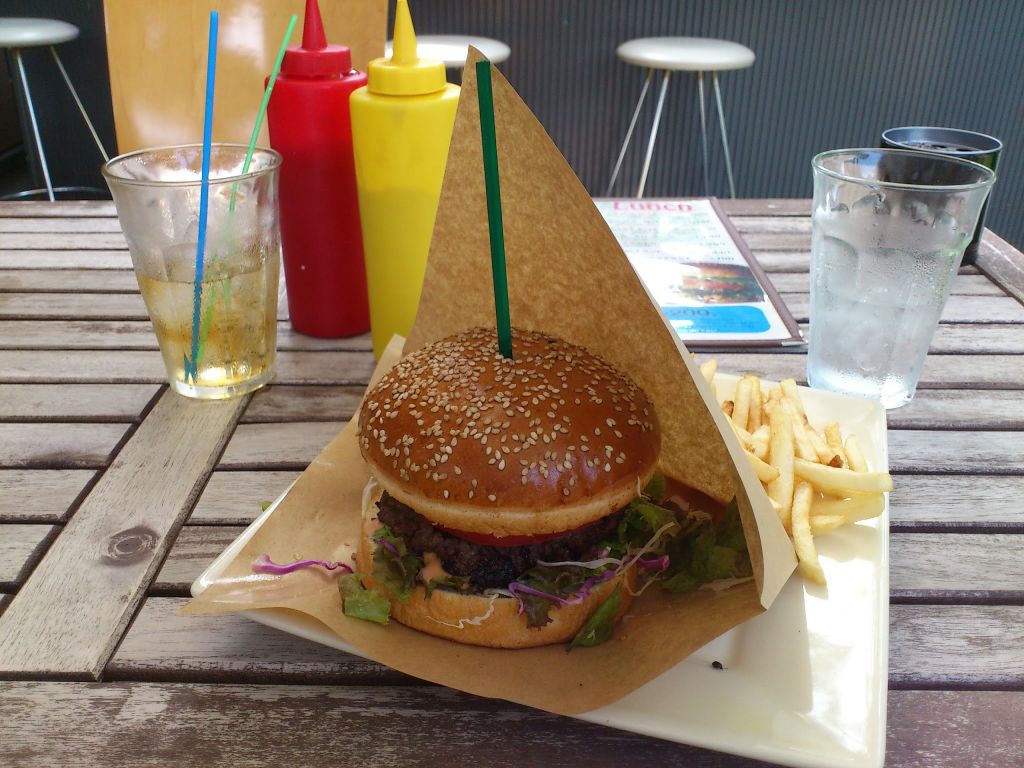 そして今週、今度は旦那サンがハンバーガーを食べたいと珍しく主張したので、またまたチャリで国立のカフェラフレスカに向かいました。そしたら無くなってました(TдT)いつの間にか閉店してたみたい。。あぁぁ~と思ったけど仕方ないので、通り道に前に一度行ったことがあった中華料理だったかな、があったのでそこに入ったら、中華料理ではなくパンケーキ中心のカフェになってました。色々期待を裏切られたけれど結果オッケー!