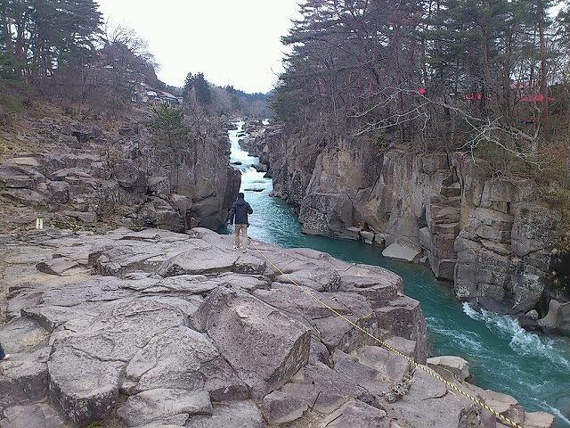 看板を見ると10分と70分の散策コースがあったので、時間もあるのでのんびり70分コースを歩く事にしたのですが、歩き始めるとどんどん水から離れてしまって残念な感じでした…10分コースの方は渓谷沿いを歩けてつり橋を渡るので、こちらの方がお勧め。ただ、70分コースには桜並木があったので、時期がよければそちらも楽しめるのだと思います、はい。岩手はまだ寒くて、桜は4月の中旬ごろだそうですよ。